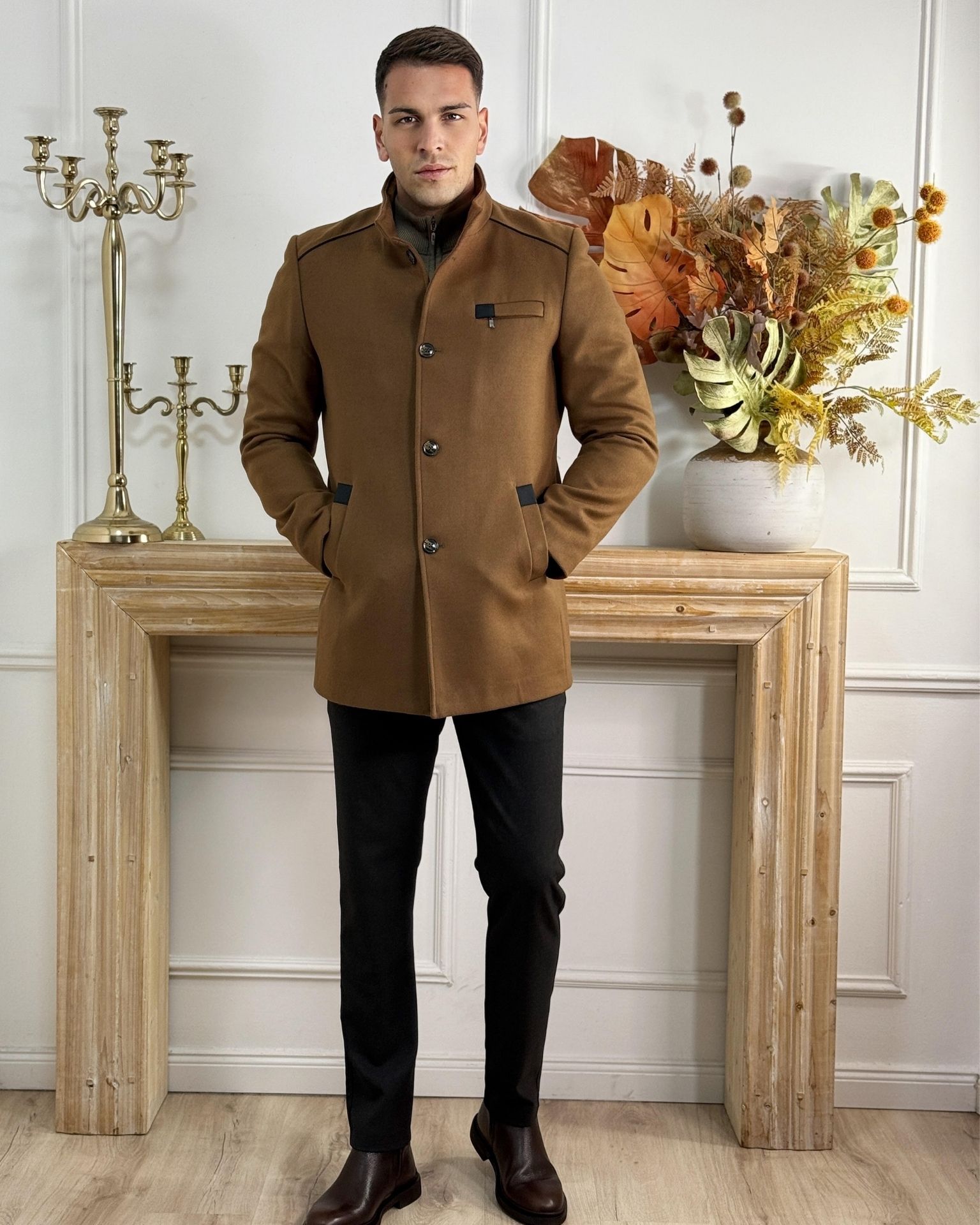 Informacije o proizvodu "Muški braon kaput sa crnim detaljima"