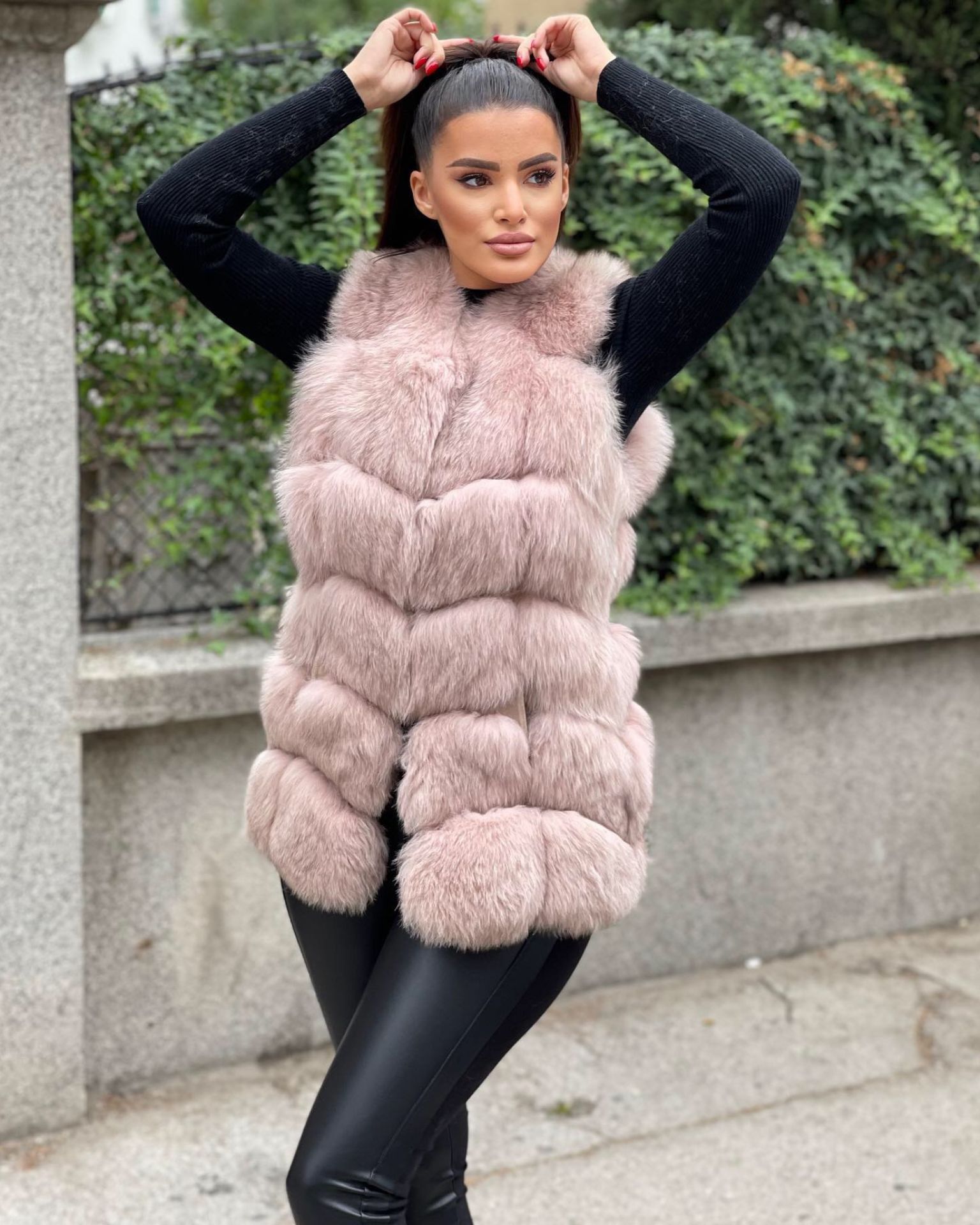 Informacije o proizvodu "Puder roze prsluk od prirodnog krzna polarne lisice"