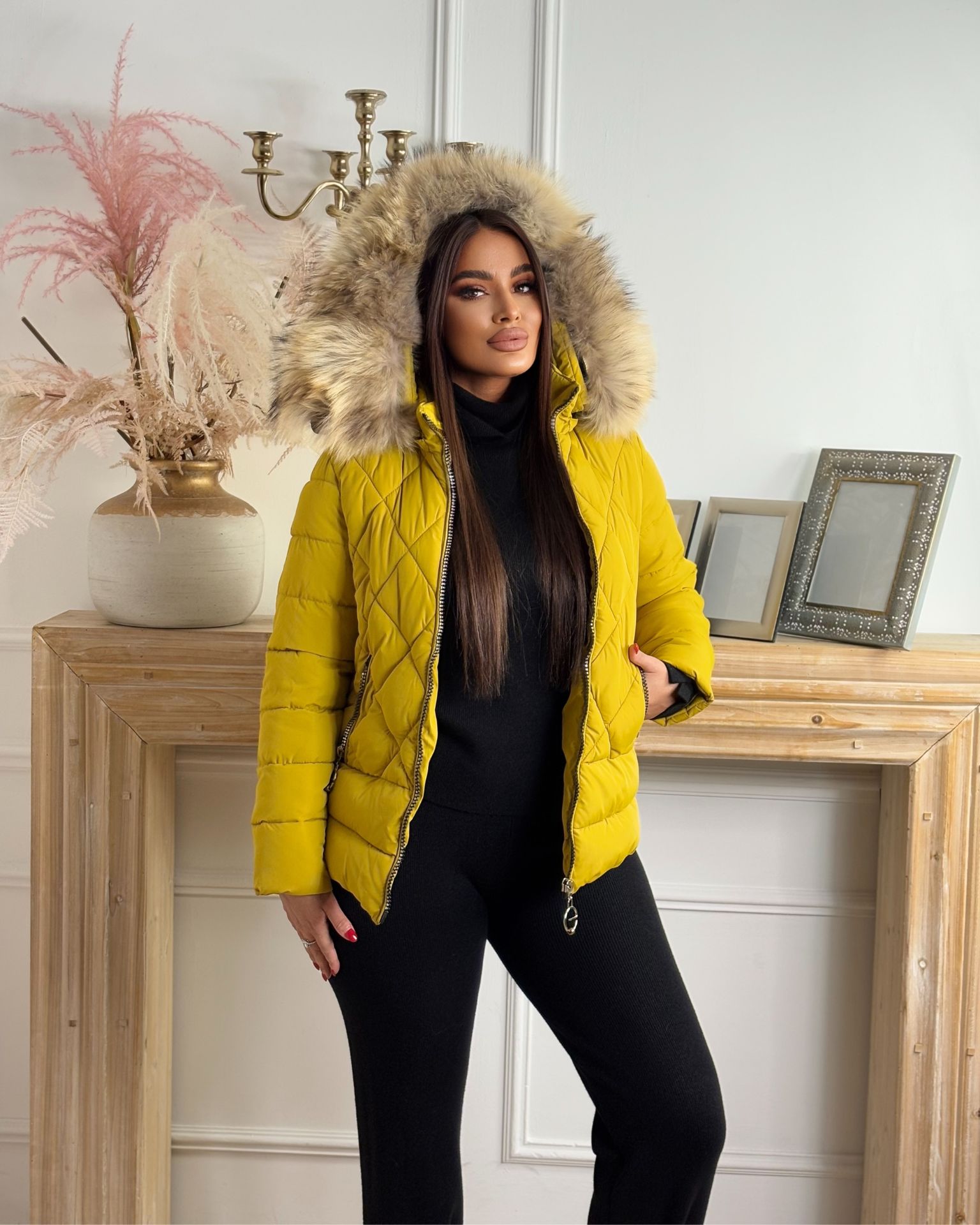 Informacije o proizvodu "Žuta zimska jakna sa prirodnim krznom polarne lisice"
